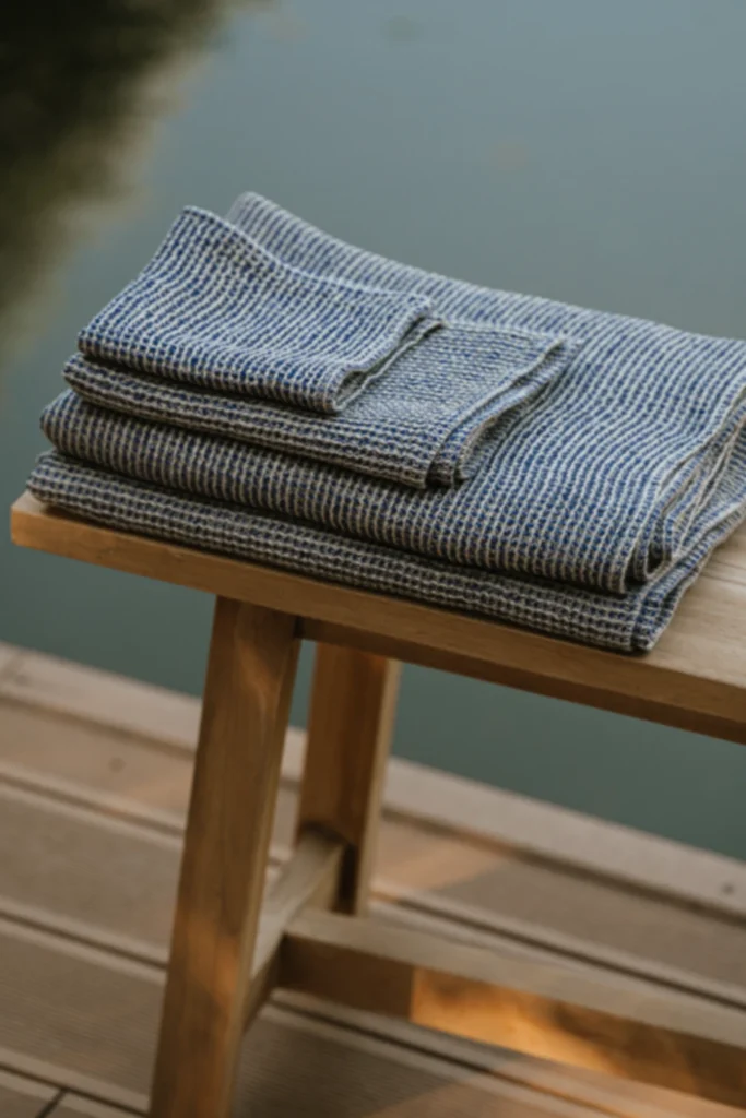 Tkaniny lniane charakteryzują się wysoką przepuszczalnością powietrza i są higroskopijne, co oznacza, że świetnie wchłaniają wilgoć. Len jest przewiewny i przyjemny w dotyku, co czyni go idealnym materiałem na ręczniki do sauny. Dzięki swoim właściwościom termoregulacyjnym, ręczniki lniane są odporne na wysokie temperatury, co jest szczególnie ważne w saunie.