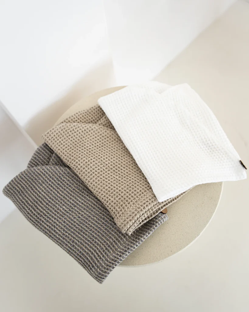 - Świetna chłonność i termoregulacja – tkanina waflowa doskonale pochłania wilgoć i zapewnia optymalną cyrkulację powietrza.